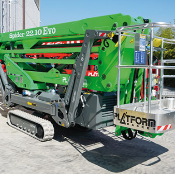 The Spider 22.10.46 kV is a platform model specifically designed for aerial work near live power lines. Close collaboration between Platform Basket Srl and American dealer Trackedlifts Inc. led to the development of a tracked self-propelled aerial platform in the 22-metre working height range partially made from fibreglass. The platform currently has no competition in the American and international markets.
