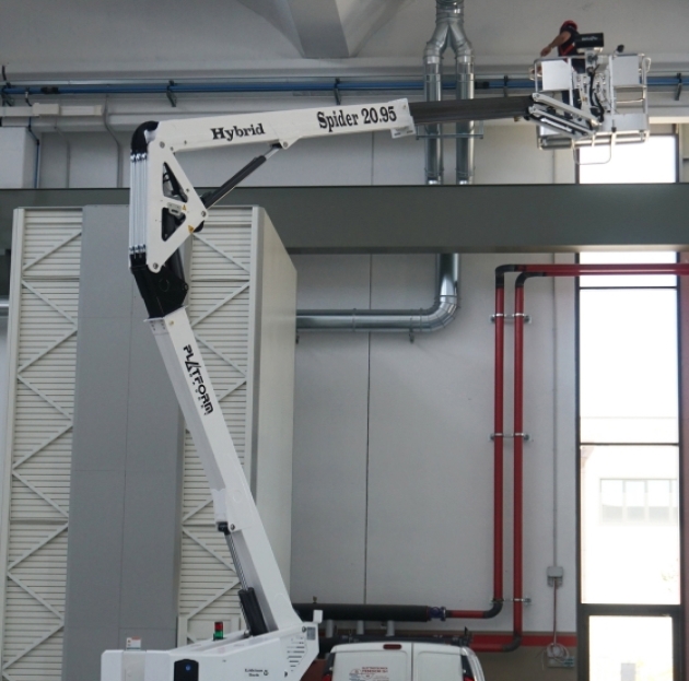 The manoeuvrability of the platform allows its positioning in close proximity to the work area, for stable and comfortable aerial work.